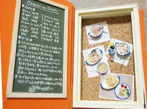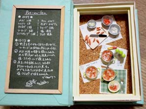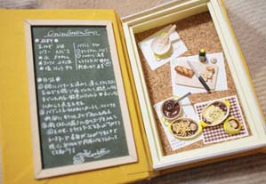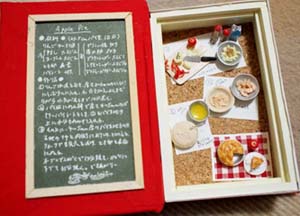 「ふゆじたく」にぴったりな、スープやグラタンなどの温メニューレシピ過程をブック型のBOXの中にミニチュアで表現しました。 見開き左側のレシピで本当の料理も作れます。