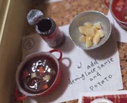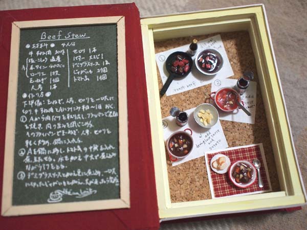 本当に料理が作れます。 右:レシピを1〜3の工程毎にミニチュアで表現しました。 |