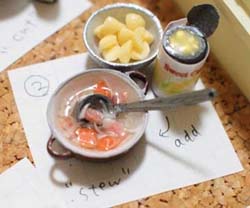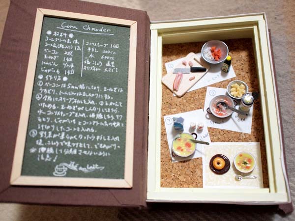 本当に料理が作れます。 右:レシピを1〜3の工程毎にミニチュアで表現しました。 |