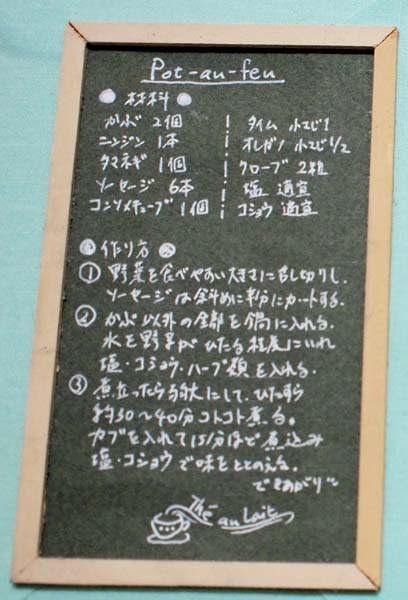 左上:黒板風の紙に、レシピを書きました。