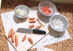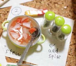 本当に料理が作れます。 右:レシピを1〜3の工程毎にミニチュアで表現しました。 |