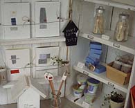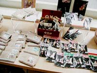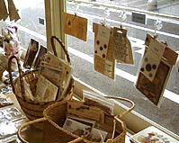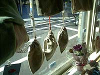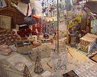 http://www.h7.dion.ne.jp/~kumosora/ キラキラひかるアクセサリー&オブジェ。 外側のガラスに飾られた雫形の布タペストリーが素敵でした。 |