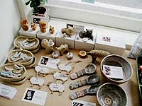しばたさちこ http://www.happyzakka.com/ 羊型のアクセサリー、鳥のピンバッジなどなどほのぼの〜とした陶器作品でした。 |