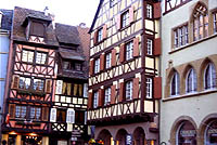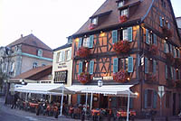 時間は17時を過ぎていたけど、まだ明るい。 ここ、コルマールはドイツ調のかわいらしい建築物が多い。ほんと、おとぎ話の世界にもぐりこんだみたい。 窓側にはかならず赤っぽい花が飾られています。