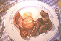 イギリスのソーセージは皮がぱりっとしていないので、私達は”やる気のないソーセージ”と呼びました。(笑) でもハーブや豚本来の味がしてけっこう美味しいです。 ベーコンは日本のより厚くて、ハムみたい。で、塩っからいです。 マッシュルームは生のものなので、美味しい。 焼きトマトは宿によって調理法が異なりますが、ここのは生に近い状態でGoodでした。 トーストはこんがり、薄い。おかわり(しなかったけど)もOKです。 そしてやっぱりたっぷりの紅茶。ミルクも。 |
