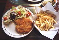 チキンムネ肉のカツで柔らかく美味しい。 チップス(フライドポテト)がボリュームたっぷり。