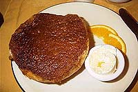 シナモンバターのトースト。クロテッドクリーム付。 バンズは大きいけど、口当たりが軽いので食べやすい。 茶色いところはシナモンシュガー。 |