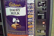 チョコレートの自販機 → → → ロンドンの地下鉄では、ほとんどCadbury社の自販機。 国鉄だとMars社(M&Mのメーカー)のがあったりする。 | ![]() |